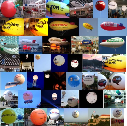 Cepelini i lopte od vinila sa Vasom reklamom ili bez.Objekti su jednobojni, ali ih imamo u raznim bojama.Po zelji ugradjujemo osvetljenje u cepeline i lopte po sopstvenom resenju. osvetljenje moze lako da se vadi i ponovo postavlja.Jedinstvena reklama koja lebdi i sija iznad grada na visini do 50m od tacke kacenja.Vidljiva je po lepom vremenu u precniku od 6Km!Usluzno punimo objekte helijumom ili vazduhom, podizemo ih ili ih kacimo, nadgledamo, dopunjavamo gasom,brzo izduvavamo, pakujemo i skladistimo. Imamo opremu za cuvanje objekata od ostecenja ( zastitne mreze, prostirke, ankere,… ), kao i opremu za saniranje eventualnih ostecenja.Prodajemo uz cepeline i lopte i kompletnu potrebnu opremu, od boca za helijum, transportnih kolica, creva za punjenje gasom,uzadi za fiksiranje objekata, celicnih sajli, betonskih tegova, zastitnih mreza,....Uz kupljene objekte isporucujemo detaljno uputstvo za rukovanje, odrzavanje, skladistenje i cuvanje.Objekte i opremu isporucujemo na teritorije svih Republika bivse SFRJ.Na sva pitanja nudimo brze, strucne i kvalitetne odgovore  Tel.: + 381 63 516 404. E-mail : info@baloniprint.co.rs